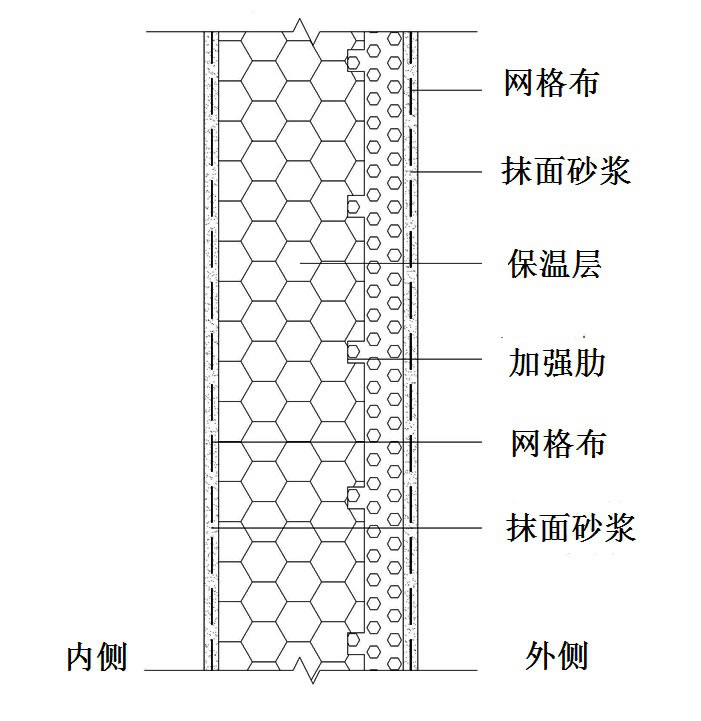 外墻保溫一體板經(jīng)工廠化預(yù)制,由保溫芯材(EPS\XPS\PU\石墨聚苯板\石墨擠塑板等)、防護層(膠粉聚苯顆粒漿料)、加強肋、內(nèi)外側(cè)加強層(硅酸鈣板、聚合物水泥砂漿(復(fù)合耐堿網(wǎng)格布或后熱鍍鋅電焊網(wǎng))等)組成,在現(xiàn)澆混凝土工程施工中起免拆外模板作用和保溫隔熱作用的復(fù)合外模板。